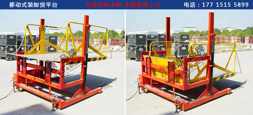 移動式裝卸貨平臺用于配合貨車裝卸貨物。設(shè)備上的翻板對接貨車尾部,可以提升2噸的貨物,底部輪子移動行走, 屬于流動式的登車橋,大大利用工廠實際使用空間,提高裝卸貨的效率,減少人工成本。